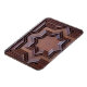 Avslutat polerad mörk ekdörr till den spanska medeltida kyrkan med inlägg och latin ovan.