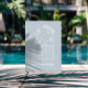 Ska din lilla unge rida vågen till den stora? Fira med denna moderna, minimala blåa inbjudan, med en minimalistisk konslitscen med surfboard, vågar och alla!