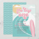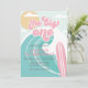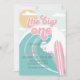 Den stora! Surfing Beach Birthday inbjudan med turkos vågar and rosa surfa Board.