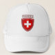 Den Suisse logotypen skyddar emblemflagga av Truckerkeps