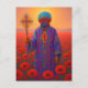 En färglös teckning i ett surrealistiskt stil av en präst med ett disco boll-huvud i en vallmo fält