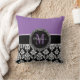 Den svart damastast purpurfärgade Monogrampersonligen kudder. Design vid Elke Clarke ©. Skräddarsy med din namn och monogram. Ändra bakgrundsfärgen och monogramfärg för, om du gillar fullständigt för att personifiera din dekorativ kudde för att matcha dina sovrumfärger. En underbar gåva för tonåringar och mammor.