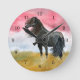 Tar tid på den svart hästen för vilden i ett fält på solnedgången