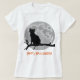 Enkel design av den svart katten som sitter på en gren av ett träd och i bakgrunden en jätte- måne.