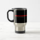 Den symboliska tunn röda linjen i texten på svart resemugg