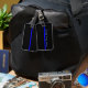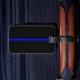 Den symboliska tunna blå linjen anpassar detta bagagebricka