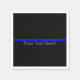 Den symboliska tunna blå linjen i texten på svart pappersservett