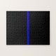 Den symboliska tunna blålinjen på heltäckandesvart pussel