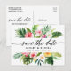 Modern Elegant Calligraphy, Watercolor Tropical Blommigt och Grey Bröllop spara datum Postcard