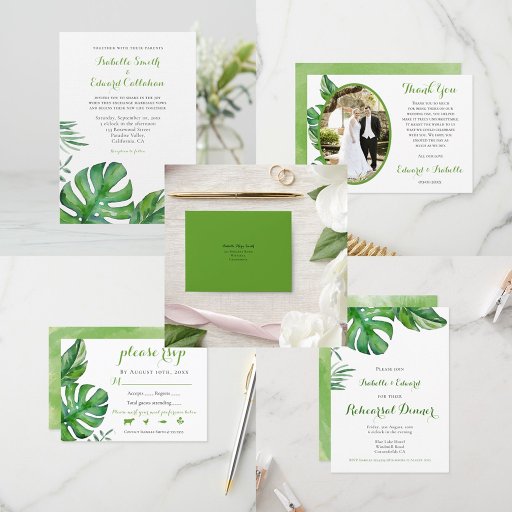 Den tropiska Grönten Monstera Löv Bröllop Tack Kort