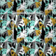 Det tropiska handflatan träd är ett modernt, sömlöst mönster. Vitt, turkos guld och svart färg.