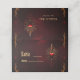 Den underbara vackra konsten av gotisk elegans. Romantisk utformning med ett centralt motiv för ett brinnande ljus i ett hjärtformat ram. Ljuset är omgivet av bergigt, guldliknande grenar och hjärtat är försett med röda juveler. Bakgrunden är en djup krimson, och bilden ramas in av ett ornerat rullningsarbete i guld med droppade röda accenter. Den allmänna stämningen är en stilig elegans och mystik.