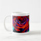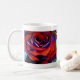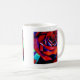 Valentine mugg med originaldesign av den röda engelska ro-makroblomman från den ursprungliga vattenfärgsmålningen av Sacha Grossel Art. Stor närhet till den blå blomman med blå högdagrar som inspirerats av kärlek och passion.