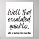 Det eskalerade snabbt. Anpassningsbarnas väggtypografi i klassisk svartvit design. Redigera om du vill lägga till ditt namn. Underbar för ett kontorsutrymme.