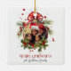 Snygg vattenfärg Julbauble ram med ett rött julband med hullbär och nålgrön blad. Ett vackert julfamiljfoto ram. Anpassa genom att ändra bild och texten.
