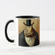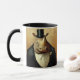 Lägg fram en hett dryck från mugg med två noshajer i tuxedos och top hat.