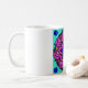 Psychedelic mandala mönster, rosa, teal, blått, gult.