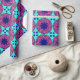 Psychedelic mandala mönster, rosa, teal, blått, gult.