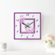 Den violetta blommaramväggen tar tid på fyrkantig klocka