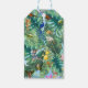 Blå himmel och grönt löv där älvor har gömt inom en fet blommigt och där fjärilar och fåglar har party på en barngåva