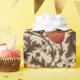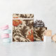 Inpackning av papper i vintageWilliam Morris ett blom- damastast mönster av anemonen blommar, och löv som förhöjs digitalt, och färgade - djup choklad - bruntlöv och blommor skuggar in av rostar orange och mjukt guld på en medelbeige bakgrund