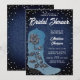 En modern, elegant- och chic-denim och diamanter i inbjudningskort för möhippan som har en denim-bakgrund, en denim-blå cowgirl-bock med en elegant ro täckt i rinestoner (detta är en digital effekt) och typografi i vitt. En chic, snyggt och klassens "denim och diamanter"-design för en modern brud som kärlek denim!