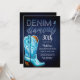 En modern rustik, elegant och chic 30:e (eller någon annan) födelsedagsfest inbjudan för kvinnor med ett denim- och diamanttema. Den har en denim-bakgrund, en blå, påstående cowgirl-bock i akrylmålning och typografi i vitt. En chic, snyggt och klassens "denim och diamanter"-design för en kvinna på hennes trettionde, fyrtionde, femtionde - eller vilken - födelsedag som helst!