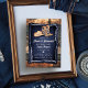 Ett orustiskt, modernt, elegant och chic födelsedagsfest inbjudan med ett denim- och diamanttema. Den har en deim-korvbakgrund på en tryckt träbräda, ett par cowgirl-skor med en ro-detalj täckt i rinestoner (detta är en digital effekt), en cowgirl-hatt med en rinestondetalj (även en digital effekt) och typografi i vitt. En chic "denim och diamanter"-design för en kvinna på hennes födelsedag!