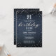 En enkel, modern, elegant- och chic-födelsedagsfest inbjudan-mall med blå denim-bakgrund, ord BIRTHDAY täckt av vita diamanter (simulerade, inte verkliga diamanter) och i moderna kalligrafbilder och rustik typografi i vitt. En chic "denim och diamanter"-design för en ung kvinna på hennes 21:a födelsedag!