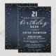 En enkel, modern, elegant och chic 21:a födelsedagsbjudandemall med en denim-bakgrund, ord BIRTHDAY täckt av vita diamanter (simulerade, inte verkliga diamanter) och i moderna kalligrafiskript och typografi i vitt. En chic "denim and diamonds"-design för en kvinna på hennes tjugoförsta födelsedag!
