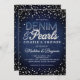 En modern, elegant och chic, denim och pärlpars duschinbjudan med ett denim-, diamanter och pärltema. Den har en denim-bakgrund, elegant-rhinestoner och pärlor (detta är digitala effekter, inte riktiga stenar eller pärlor!) anpassningsbar-brev för ord "denim" och typografi i vitt. En chic "denim and diamonds and pearls"-möhippa bjuder in ett modernt par som kärlek denim.