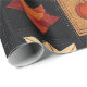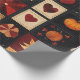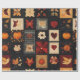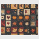 Denna pappra omslutning har en denim-texturerad folkkonst quilt mönster, som blandar höst och land-stil charm. Facklappen består av fyrkantiga block som är sammanfogade och som var och en uppvisar ett tydligt motiv, såsom pumpor, höst löv (ek och maple), fåglar, solblommor, hjärta och stjärnor, allt i en rustik primitiv americana stil. Den varma paletten med orangar, och , står i skarp kontrast till den mörk blått och svarta bakgrunden, vilket ökar djupet och ger en mysigt, handgjord känsla. Perfekt för jordbruksgrödor, hösthantverk, projekt för Thanksgiving, rustika textilier och land-inspirerade DIY-konstruktioner.