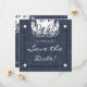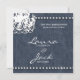 Blå jean denim och diamant bröllopsinbjudan med snygg ljuskrona.