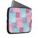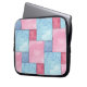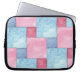 En attraktiv skyddande sleeve för din bärbara dator, med ett lappverk av rosa och blå denim mönster, från en handmålad vattensordesign av Judy Adamson.