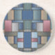"Denim Patchwork": en symmetrisk arrangemang av texturerade, tygliknande rektanglar i muterade toner av blått, grönt, rosa och beige. Layouten liknar en lapptäcke eller mosaik, där varje block är noggrant justerat för att skapa en balanserad, rutnätsliknande struktur.