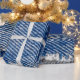 Denim ram. Rippat denim-tyg med ytterkant kant Presentpapper