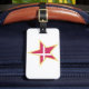 Make your suitcase stand out at the airport with these eye-catching Denmark flag star luggage tags. Featuring the Danish Dannebrog in a star shape with a gold trim, these tags help you easily identify your bags while showcasing your love for travel and Scandinavia. These durable tags are essential for any frequent flyer or vacationer heading to Northern Europe. They provide a secure way to keep your contact information attached to your gear while adding a touch of patriotic style to your travel accessories.