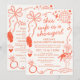 Gör dig redo att byta fjädrarna mot en slöja! Fira den blivande bruden i riktig Las Vegas-stil med denna inbjudan till möhippa "This Wife is a Showgirl". Med en chic, retro-inspirerad illustration av en showgirl i ett martiniglas, diskobollar och lekfulla slingor fångar denna design glamouren och glitter från en klassisk kabaré-kväll. Denna dubbelsidiga inbjudan är både funktionell och stilren. Framsidan visar alla dina evenemangsuppgifter med rolig, handskriven typografi, medan baksidan innehåller en fullständig helg-itinerary för att hålla "I Do"-gänget organiserat från fredagens "Arrival & Sips" till söndagens "Farewell Brunch". Anpassa enkelt texten med Zazzles designverktyg för att matcha dina specifika