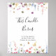 Denna klassiska färgrika vilda blomljusstake brinner skylt är perfekt för en rustik bröllop. Designen har gula, lila, vita vilda blommor med lövverk i en rosa och grön akvarellbakgrund.