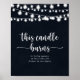 Denna ljus brinner rustic skylt för stränglyktor är perfekt för ett enkelt bröllop. Designen har vackra handmålade stränglyktor mot en mörkblå bakgrund.