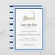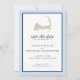 Bröllop spara datum för din Cape bröllop. Karta i Cape Cod med rosa hjärta över Dennis Port, Massachusetts. FÄRG i Hydrangea Blue, Navy, White med rosa hjärta. Hjärtat om du behöver en annan plats. Om du vill ändra designen kan du skicka e-post till paula@labellarue.com INNAN DU PLACERAR EN ORDER så att du kan skapa en ny design så att du kan arbeta med den.