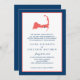 Bröllop-meddelande till er Cape Cod bröllop. Karta i Cape Cod Massachusetts med ett hjärta över DENNISPORT. FÄRG i NAVY BLUE, CORAL / NANTUCKET RED, och vit. NAVY BLUE färgad back card. NAVY BLUE färg för texten. Om schemat i färg inte är det du vill ha, skicka e-post till paula@labellarue.com INNAN DU ANPASSAR ELLER STÄLLE EN ORDER så att du kan skapa en ny design. Planering vid lycklig Bröllop! Se till att du plockor din favoritkartong så att den trycks på.