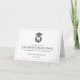 Ett minsta kort för grattisar för tandläkare med en tandesymbol under en studentmössa. Det här sitter mot ett enkelt, svart och vitt, platta hälsningskort. På insidan finns en punkt för ditt unika meddelande till mottagaren/mottagarna.