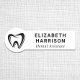 Modern professionell, vit namn bricka för tandläkare, tandläkare, tandhygienister och andra tandläkare. Behålla tandlogotypen eller ersätt med logotypen. Lägg till namn och placera i enkel typografi.