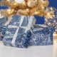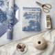 Omslagning med hög vikt är pappert för stora möbler och dörrpaneler. "Vintage Chinoiserie Delft Blue White Flower Bird Collage Decoupage Wrapping Papper." En elegant, ett mönster med blått och vitt vintage, tillverkad av en antika leksakspanel för Fransk tillsammans med botaniska Delphinium-blommor med en fågel, en klassisk kinesisk glasingerbuske burk och ett rullverk gräns med en bakgrund av kalligrafi av elegant, handskrivet brev. Detta vackra kollage var grafiskt designat av den internationellt licensierade konstnären Audrey Jeanne Roberts, upphovsrätt.