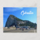 Postkarte mit dem Fels von Gibraltar über die Lande- und Startbahn des Flughafens aufgenommen. Gibratar liegt im Süden Spaniens (geographisch in Andalusien) und gehört zu United Kingdom.