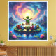 Der Froschkönig steht stolz als Dirigent vor seinem Orchester aus Frosch-Schülern. Mit präzisen Bewegungen und großer Leidenschaft führt er die musikalische Aufführung, die sein ganzes Volk begeistert.