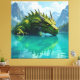 Ein uralter, mit Moos bewachsener Drache ruht friedlich im kristallklaren Wasser eines Bergsees. Seine Schuppen glänzen grün wie Smaragde, während geheimnisvolle Runen seinen Rücken zieren. Umgeben von majestätischen Alpen und dichter Tannenlandschaft, scheint dieses mythische Wesen über das Tal zu wachen – mächtig, weise und unantastbar.
