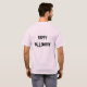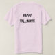 En skrämmande T-skjorta med en ursinnig clown på framsidan och hälsning, "Happy halloween på Internationell-konstnären Jo Ann Hayden