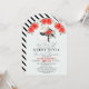 Fira bruden med denna chic och moderna derby-inspirerade bröllopsdusch inbjudan som har en akvarellillustration av en stor hatt med rosor och en svart rosett på en ljusblå bakgrund. Baksidan har ett mönster av svart-vita ränder. Anpassa den efter dina behov.